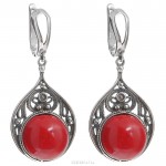 Оригинальные серьги «Анжелика», выполнены из серебристого металла в виде капельки и декорированы имитацией коралла.
