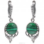 Оригинальные серьги «Орландо», выполнены из серебристого металла и декорированы имитацией малахита.