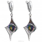 Оригинальные серьги «Нота», выполнены из серебристого металла и декорированы имитацией камня топаз.